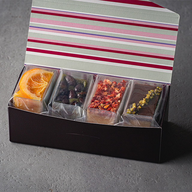 当店のラッピングは化粧箱にお入れし、リボン掛けをいたします。(有料)それ以外のラッピングはございませんので予めご了承くださいませ。ラッピングなしでも十分ギフトとしてご利用いただける、オリジナルBOXですのでご安心くださいませ。