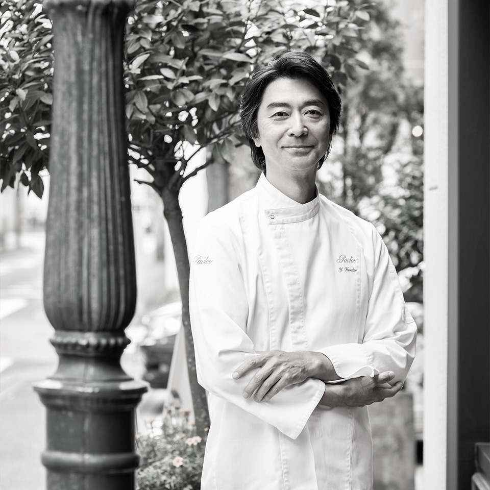 グランドエグゼクティブシェフは1990 年に渡仏し、パリ7 区「ジャン・ミエ」を経て、 パリ5 区「 ジェラール・ミュロ」 では日本人初のシェフパティシエとして活躍。 パリコレのスイーツなども手掛ける。 帰国後、国内 の数々のホテルでシェフパティシエを努めた後、 全国で結婚式場を運営する、株式会社BP グループのグランエグゼクティブシェフパティシエに就任。 芸術的かつ繊細なウエディングケーキやデザート に想いを込めて幸せをお届けすると共に、 パティスリーパブロフのシェフとして、新たなジャンル のスィーツを追求しております。